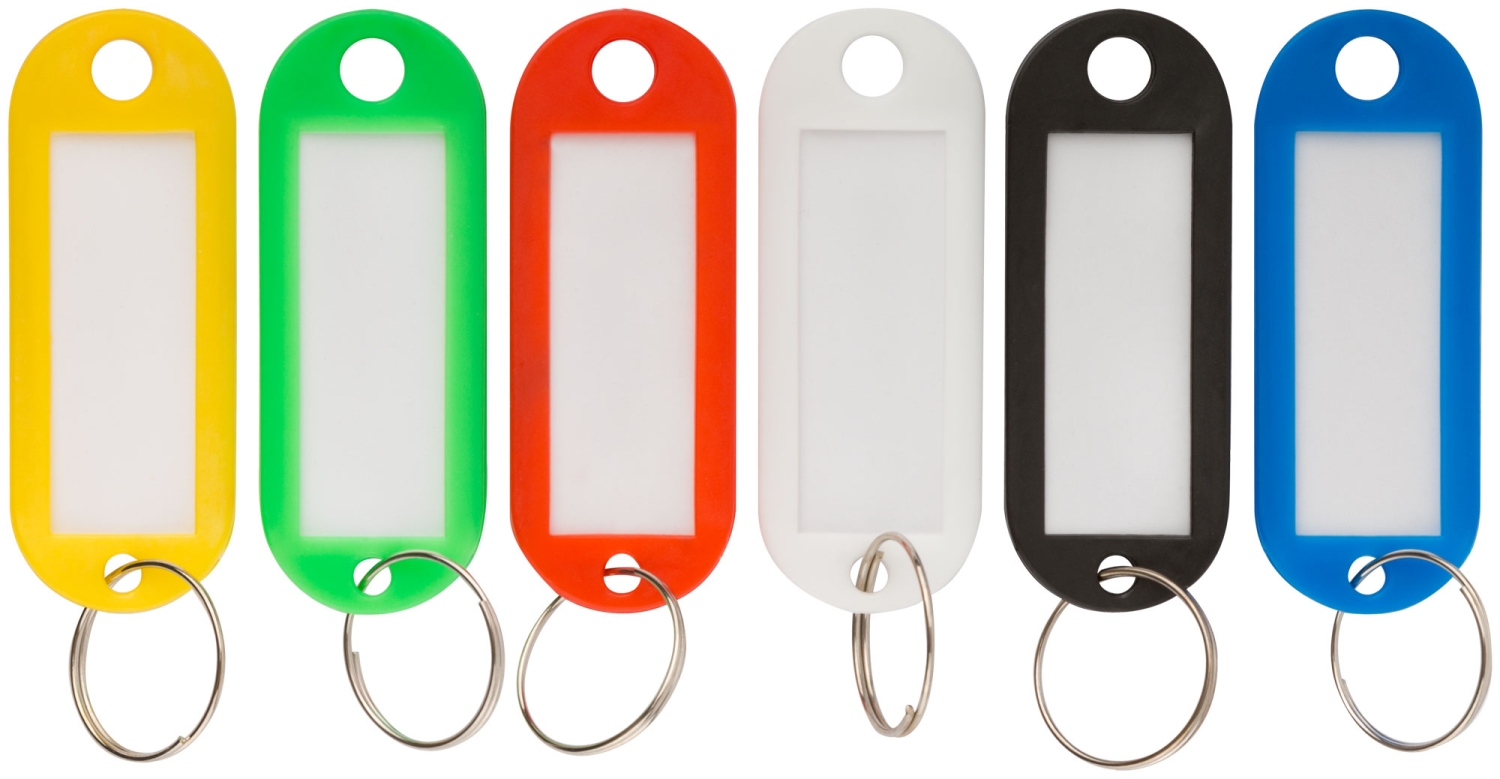 Бирки для ключей, набор 6 шт, Курс состоит из шести изделий, изготовленных из прочного пластика. Каждое изделие имеет кольцо из инструментальной стали и бумажную вставку. Бирки представлены в шести разных цветах.