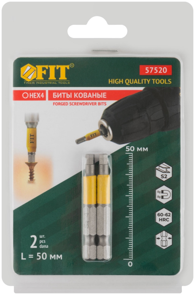 Биты кованые, сталь S2, одностор. 50 мм Н4, 2шт. Профи, блистер