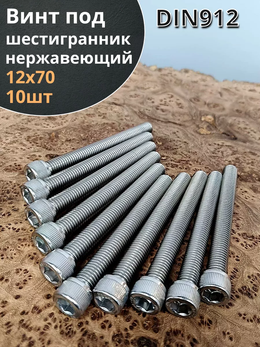 Винт нержавеющий шестигранник М12х70, DIN 912,10 шт