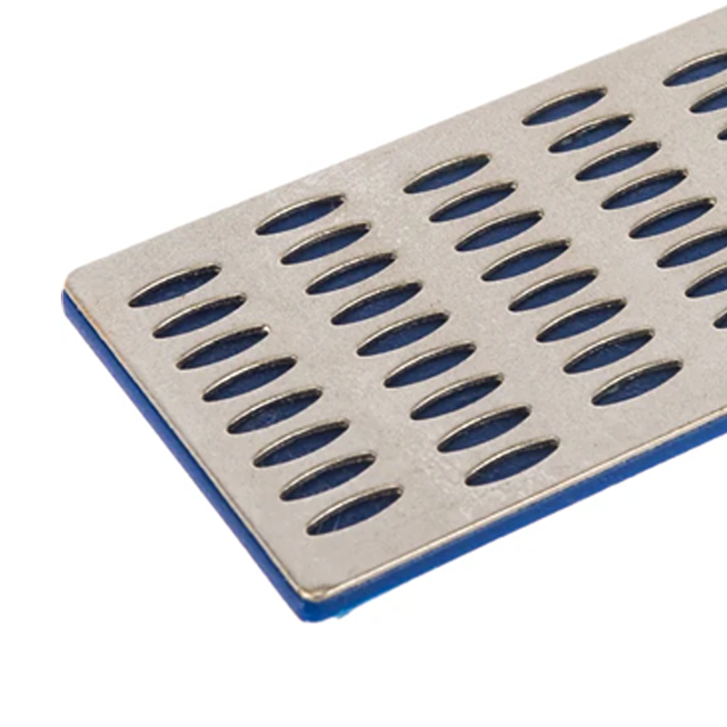 Брусок абразивный алмазный 150х50 мм Р800, синий с зернистостью Р 800 предназначен для заточки лезвий ножей и ножниц. Удобная форма позволяет эффективно работать с различными инструментами. Очень мелкая зернистость позволяет добиться высокой гладкости и остроты режущей кромки, подходит для финишной обработки.