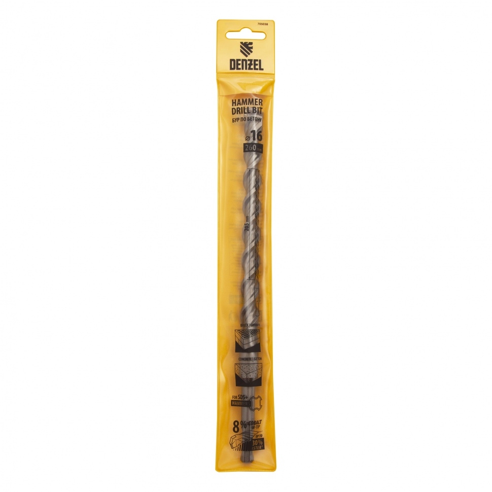 Бур по бетону Cobalt W-tip, двойная спираль, SDS-Plus, 16х260 мм Denzel
