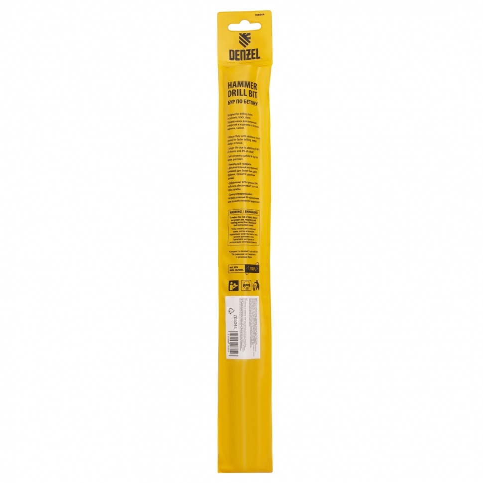 Бур по бетону Denzel арт. 705044 с хвостовиком SDS PLUS и двойной спиралью предназначен для сверления бетона, кирпича и камня. Он используется в качестве оснастки для перфораторов с патроном SDS Plus. Бур оптимален для проведения строительных, ремонтных, монтажных работ. Преимущества Продуманная конструкция — режущая твердосплавная пластина из стали ВК8 80-90 HRC с W-образной заточкой имеет высокий ресурс и способна сверлить отверстия до 30% быстрее, в том числе при работе с камнем. Прочность и износостойкость — рабочая часть из легированной стали 40Х выдерживает интенсивные и длительные ударные нагрузки, а также делает бур самым высокопроизводительным среди аналогов средней цены. Двойная спираль и канавка с дополнительным желобом — за счет более эффективного отвода шлама рабочая часть не перегревается, такая разработка позволяет продлить срок службы бура. Высокая технологичность — буры Denzel изготавливаются на производстве MAKITA, что гарантирует их качество и эффективность сверления. Бур поставляется в у