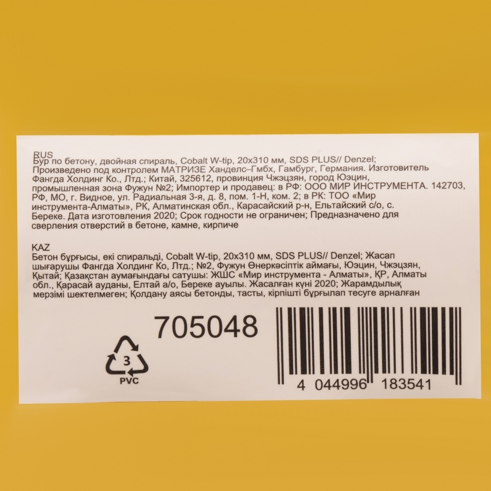 Бур по бетону Cobalt W-tip, двойная спираль, SDS-Plus, 20х310 мм Denzel