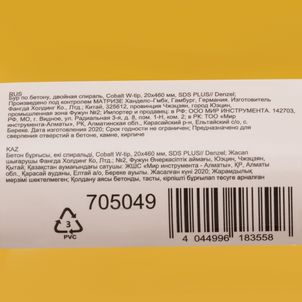 Бур по бетону Denzel арт. 705049 с хвостовиком SDS PLUS и двойной спиралью предназначен для сверления бетона, кирпича и камня. Он используется в качестве оснастки для перфораторов с патроном SDS Plus. Бур оптимален для проведения строительных, ремонтных, монтажных работ. Преимущества Продуманная конструкция — режущая твердосплавная пластина из стали ВК8 80-90 HRC с W-образной заточкой имеет высокий ресурс и способна сверлить отверстия до 30% быстрее, в том числе при работе с камнем. Прочность и износостойкость — рабочая часть из легированной стали 40Х выдерживает интенсивные и длительные ударные нагрузки, а также делает бур самым высокопроизводительным среди аналогов средней цены. Двойная спираль и канавка с дополнительным желобом — за счет более эффективного отвода шлама рабочая часть не перегревается, такая разработка позволяет продлить срок службы бура. Высокая технологичность — буры Denzel изготавливаются на производстве MAKITA, что гарантирует их качество и эффективность сверления. Бур поставляется в у