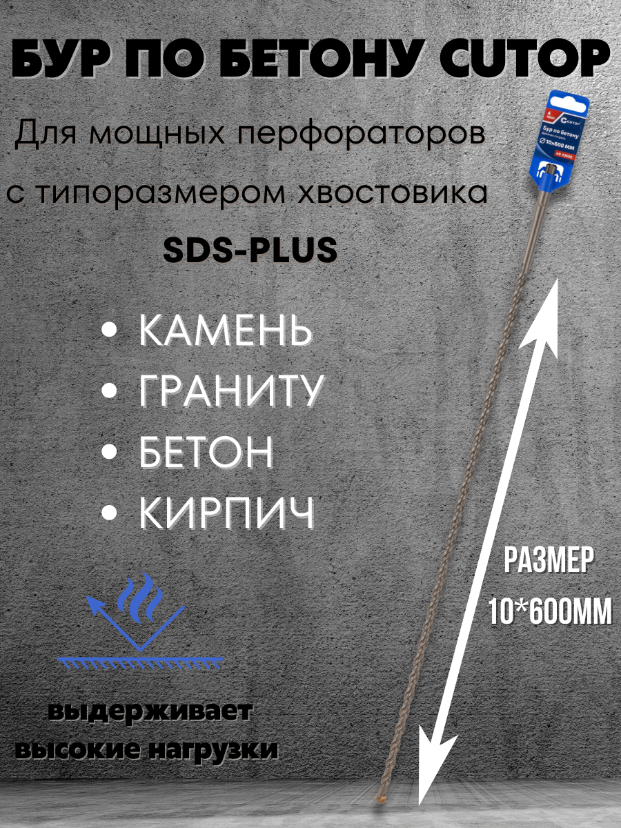 Бур по бетону CUTOP, Profi, двойная резьба, SDS-Plus, 10х600 мм
