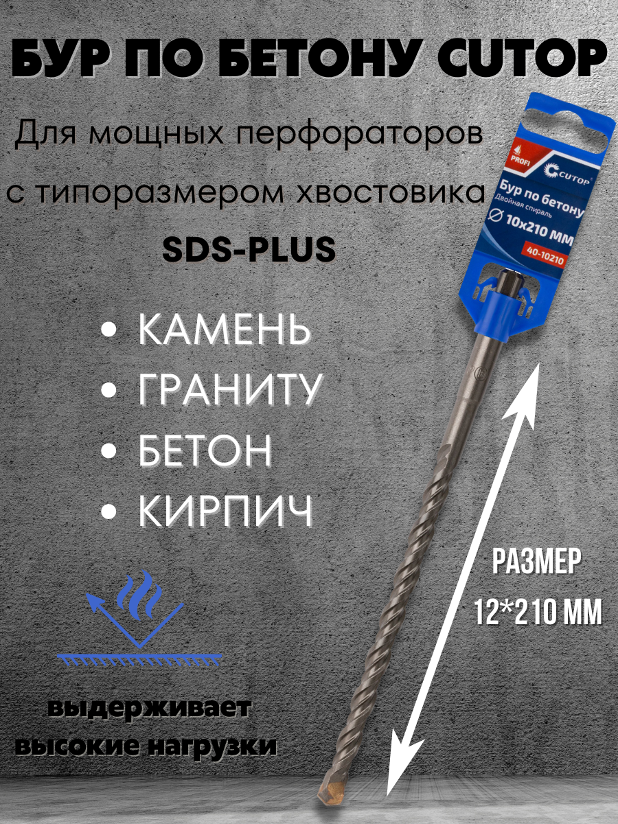 Бур по бетону CUTOP, Profi, двойная резьба, SDS-Plus, 10х210 мм 40-10210 1 шт.