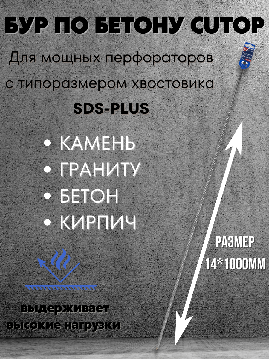 Бур по бетону CUTOP, Profi, двойная резьба, SDS-Plus, 14х1000 мм