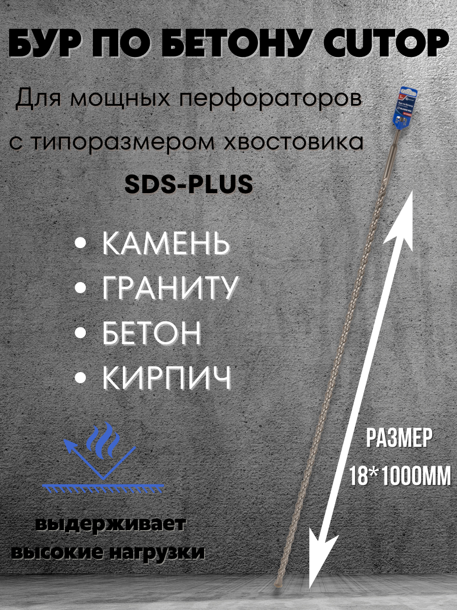 Бур по бетону CUTOP, Profi, двойная резьба, SDS-Plus, 18х1000 мм