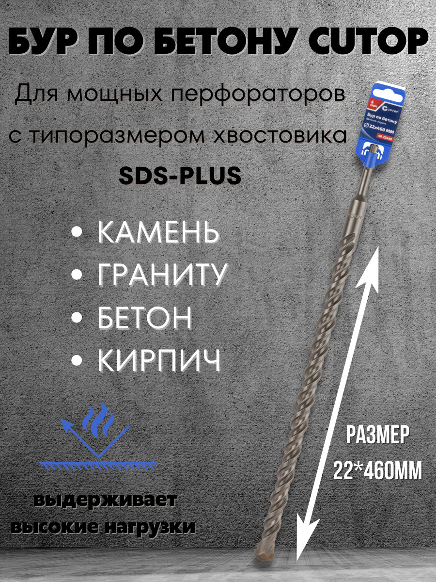 Бур по бетону CUTOP, Profi, двойная резьба, SDS-Plus, 22х460 мм