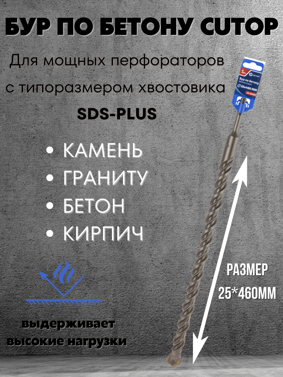 Бур по бетону CUTOP, Profi, двойная резьба, SDS-Plus, 25х460 мм