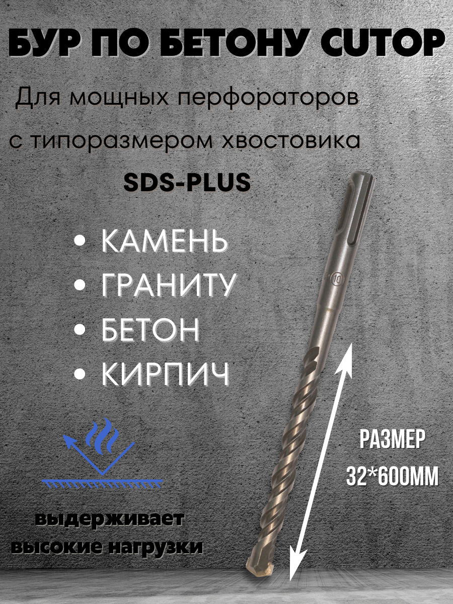 Бур по бетону CUTOP, Profi, двойная резьба, SDS-Plus, 32х600 мм