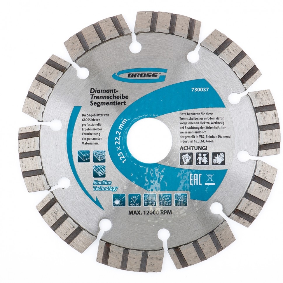| Диск алмазный лазерная приварка турбо-сегментов сухое резание 125х22,2 мм Gross | 730037 | 1 шт. |