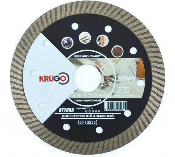 Диск алмазный по керамике супертонкий турбо 125х1,4х22,23х10 мм KRUGO
