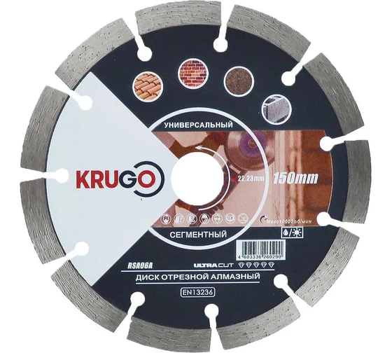 | Диск алмазный сегментный по кирпичу/бетону/граниту 150х2,2х22,23х10 мм KRUGO | RSA06Aшт | 1 шт. |