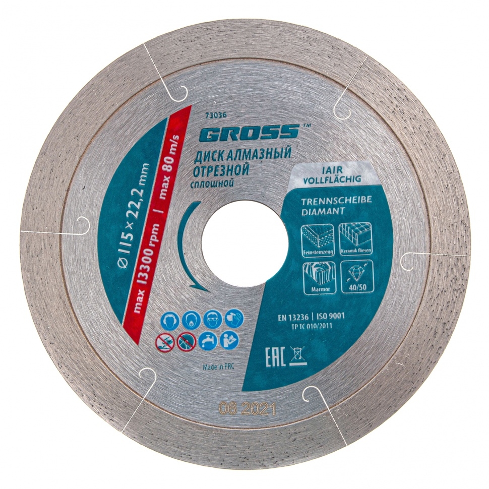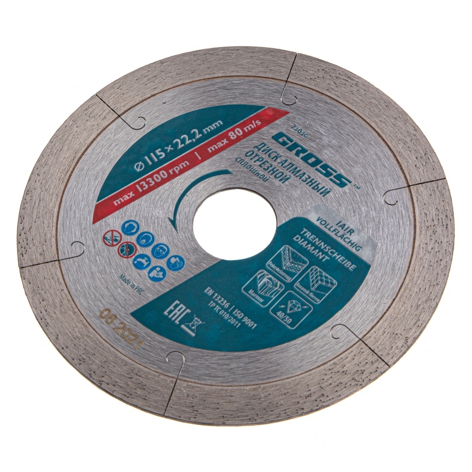 Диск алмазный сплошной с лазерн.перфорац. мокрое резание 115х22,2 мм Gross