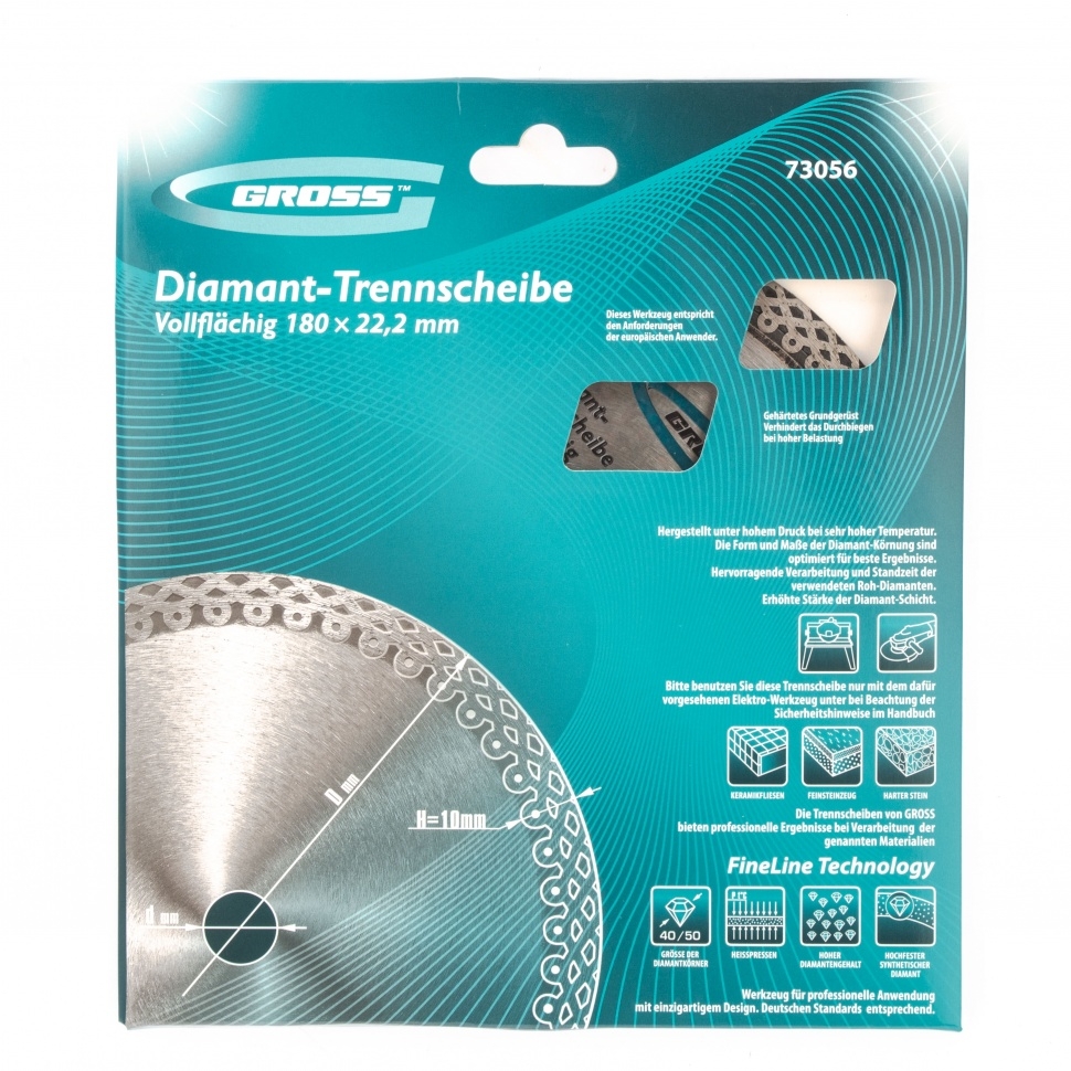 | Диск алмазный тонкий сплошной мокрое резание 180х22,2 мм Jaguar, Gross | 73056 | 1 шт. |