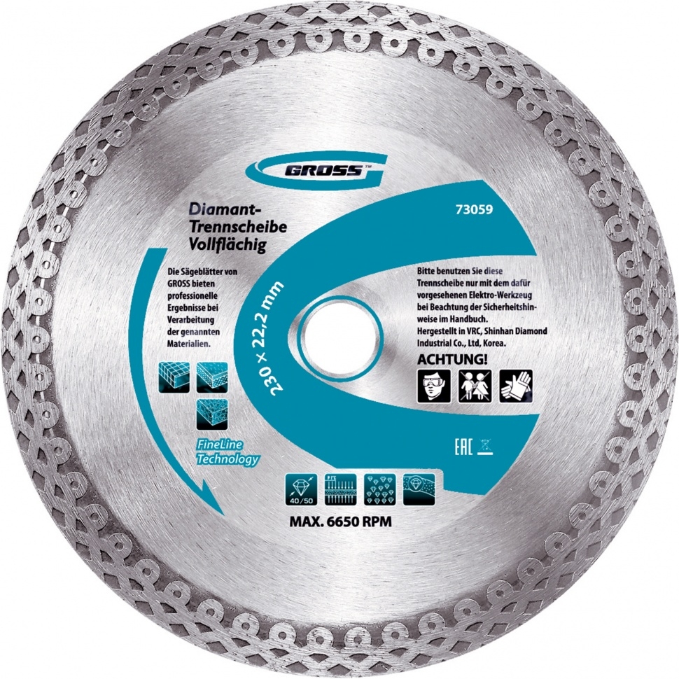 | Диск алмазный тонкий сплошной мокрое резание 230х22,2 мм Jaguar, Gross | 73059 | 1 шт. |