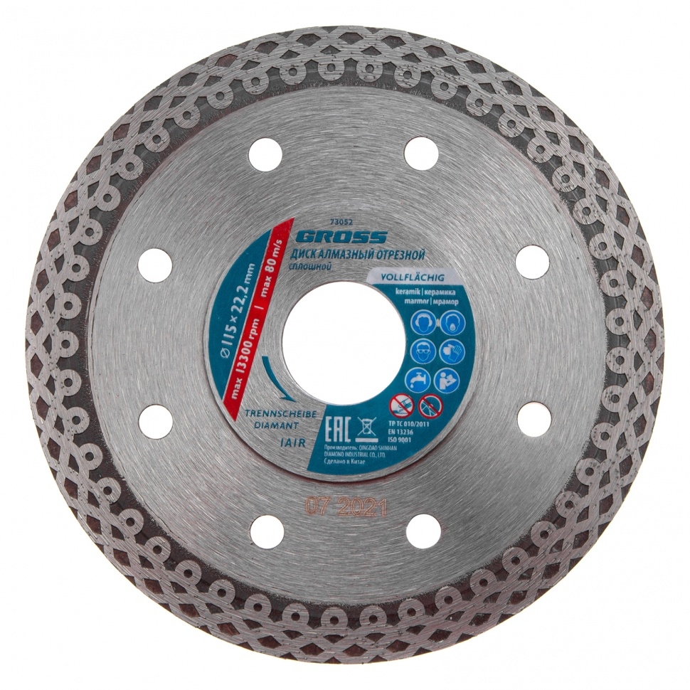 | Диск алмазный тонкий сплошной мокрое резание 115х22,2 мм Jaguar, Gross | 73052 | 1 шт. |