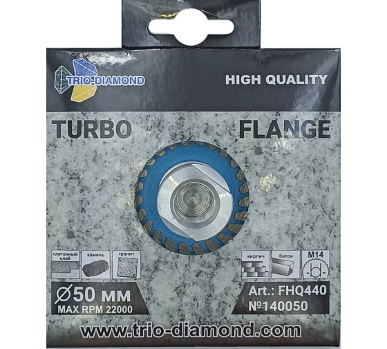 Диск алмазный отрезной Турбо с фланцем 50 мм, М14 TRIO-DIAMOND FHQ440