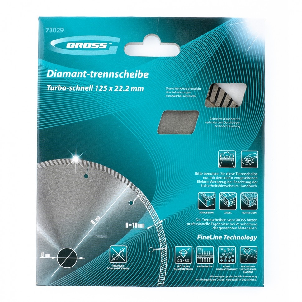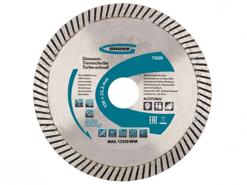 | Диск алмазный турбо с лазерн.перфорац. сухое резание 125х22,2 мм Gross | 73029 | 1 шт. |