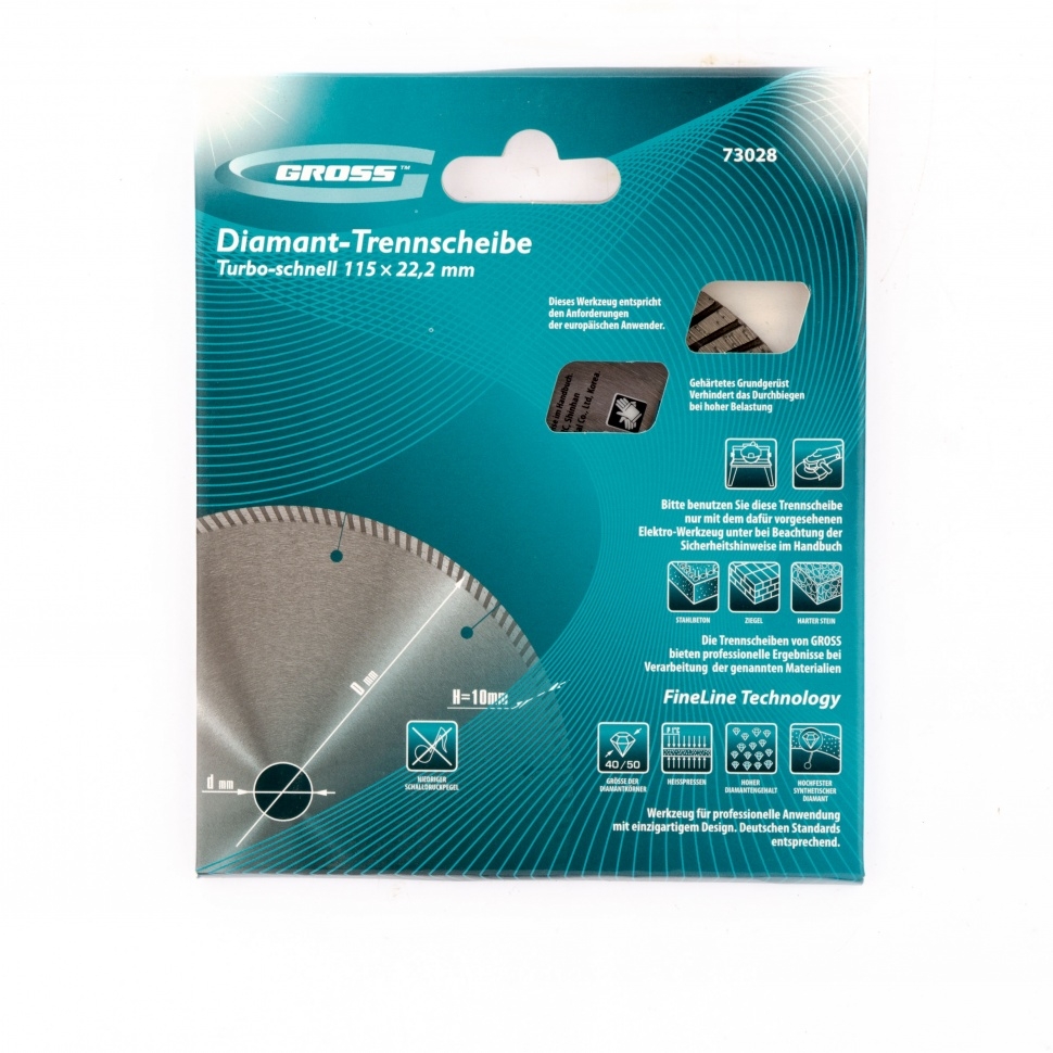 | Диск алмазный турбо с лазерн.перфорац. сухое резание 115х22,2 мм Gross | 73028 | 1 шт. |