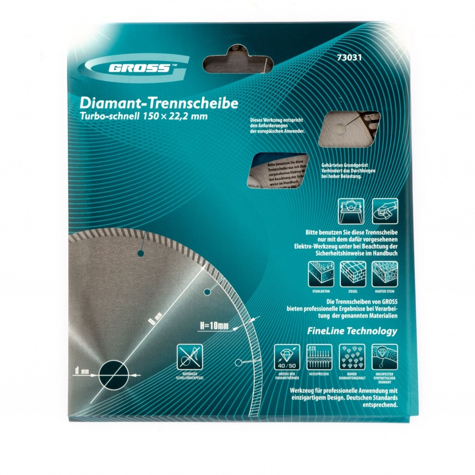 | Диск алмазный турбо с лазерн.перфорац. сухое резание 150х22,2 мм Gross | 73031 | 1 шт. |