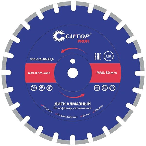 Диск отрезной алмазный сегментный по асфальту CUTOP Profi 350х3,2х10х25,4 мм