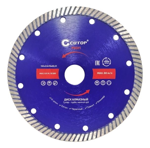 | Диск отрезной алмазный сверхтонкий супер-турбо мелкий зуб CUTOP 150х2,6х10,0х22,2 мм | 65-15026 | 1 шт. |