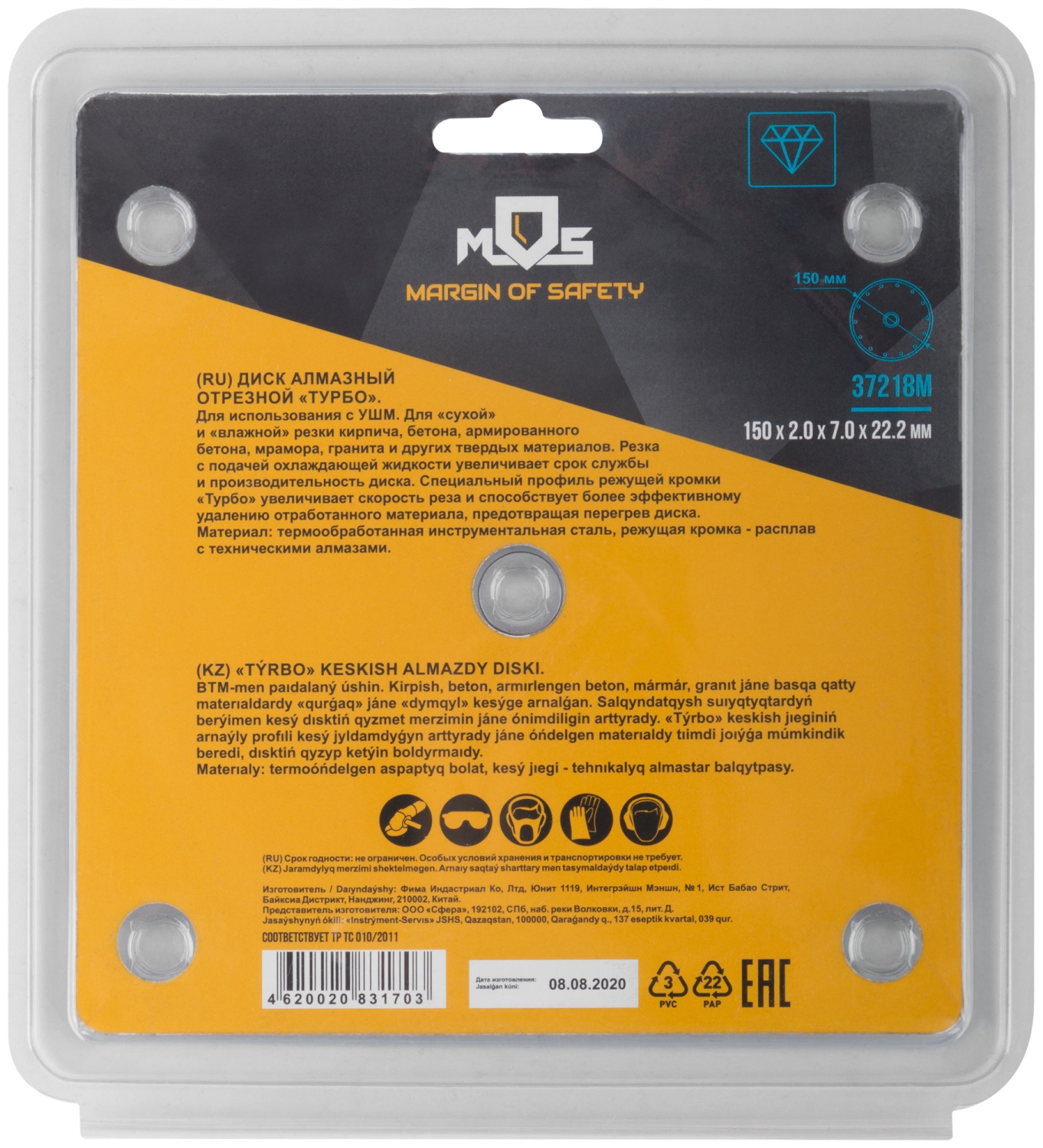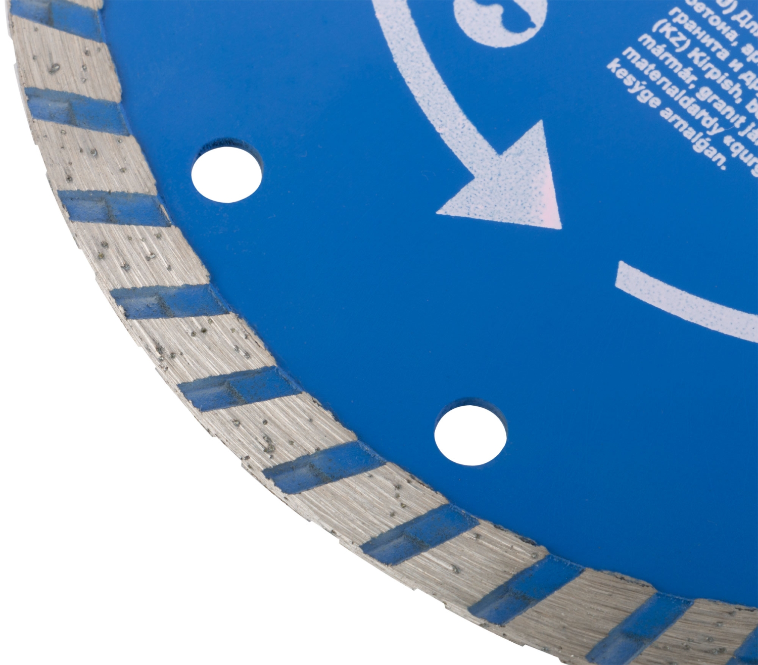 "Турбо". Для использования с УШМ. Посадочный диаметр 22,2. Для "сухой" и "влажной"резки кирпича, армированного бетона, мрамора, гранита и других твердых материалов. Специальный профиль режущей кромки "Турбо"Увеличивает скорость реза и способствует более эффективному удалению отработанного материала, предотвращая перегрев диска. Материал: инструментальная сталь, режущая кромка-расплав с техническими алмазами. Уп: Блистер