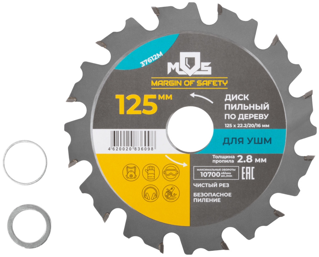 Диск пильный для УШМ 12 зубьев+2 кольца 22,2/20 мм и 22,2/16 мм 125х22,2 мм