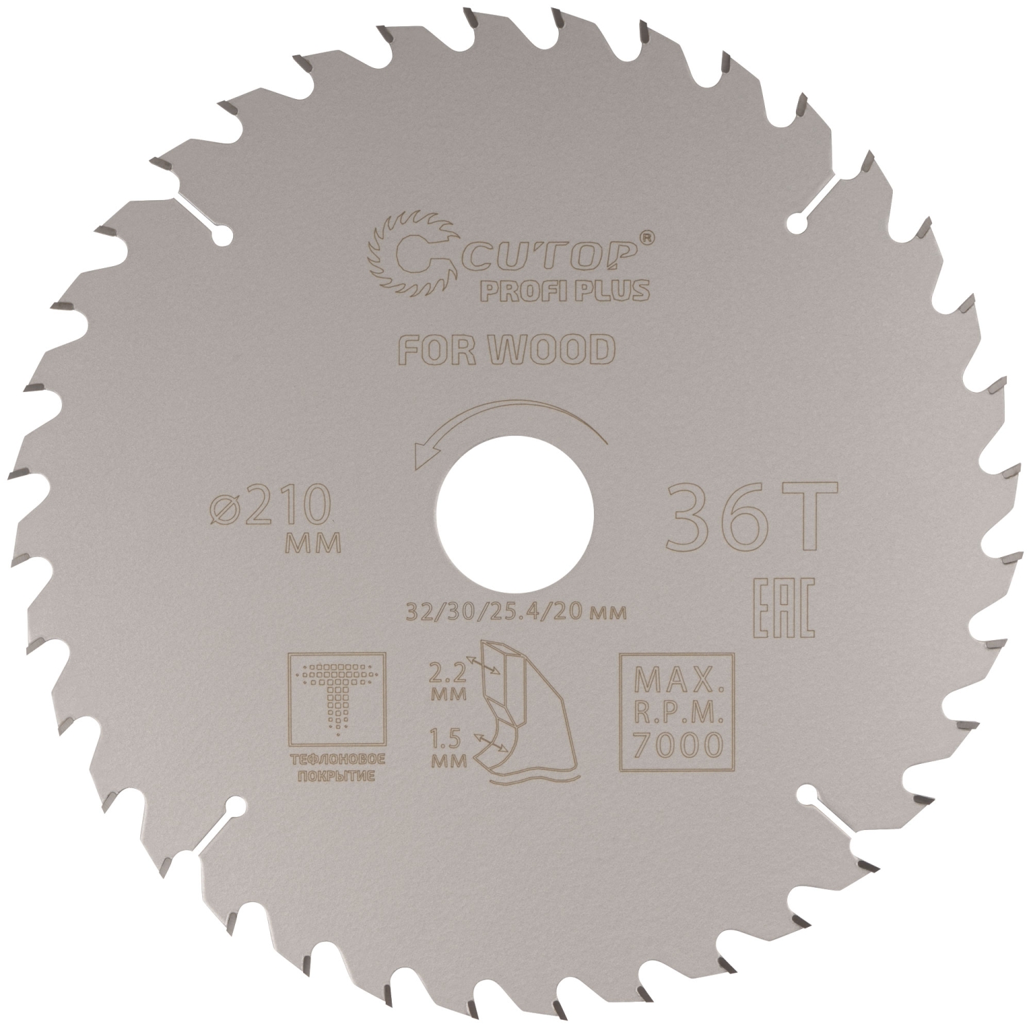 Диск пильный по дереву с тефл.покр.36Т CUTOP Profi Plus 210х1,5/2,2х32/30/25,4/20 мм