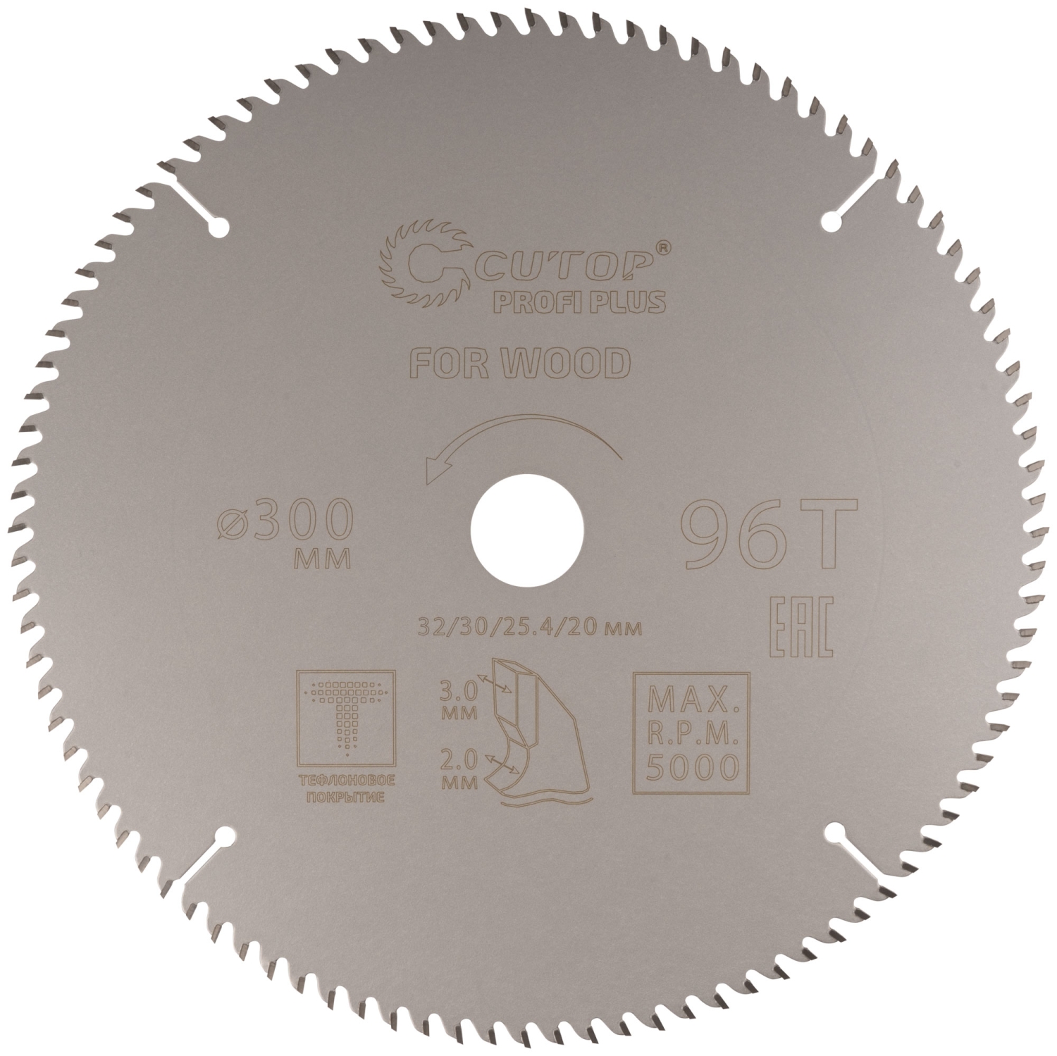 Диск пильный по дереву с тефл.покр.96Т CUTOP Profi Plus 300х2,0/3,0х32/30/25,4/20 мм