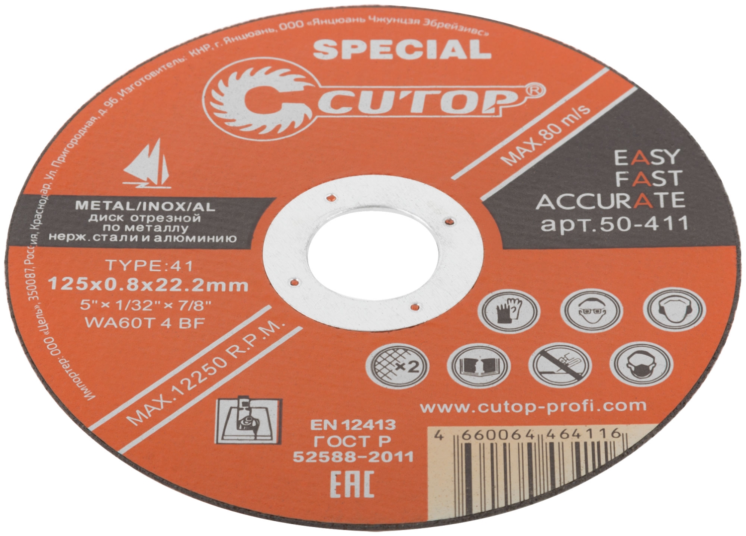 Диск Проф спец отрезной по мет., нерж.стали и алюм.Т41-125х0,8х22,2 мм Cutop Special