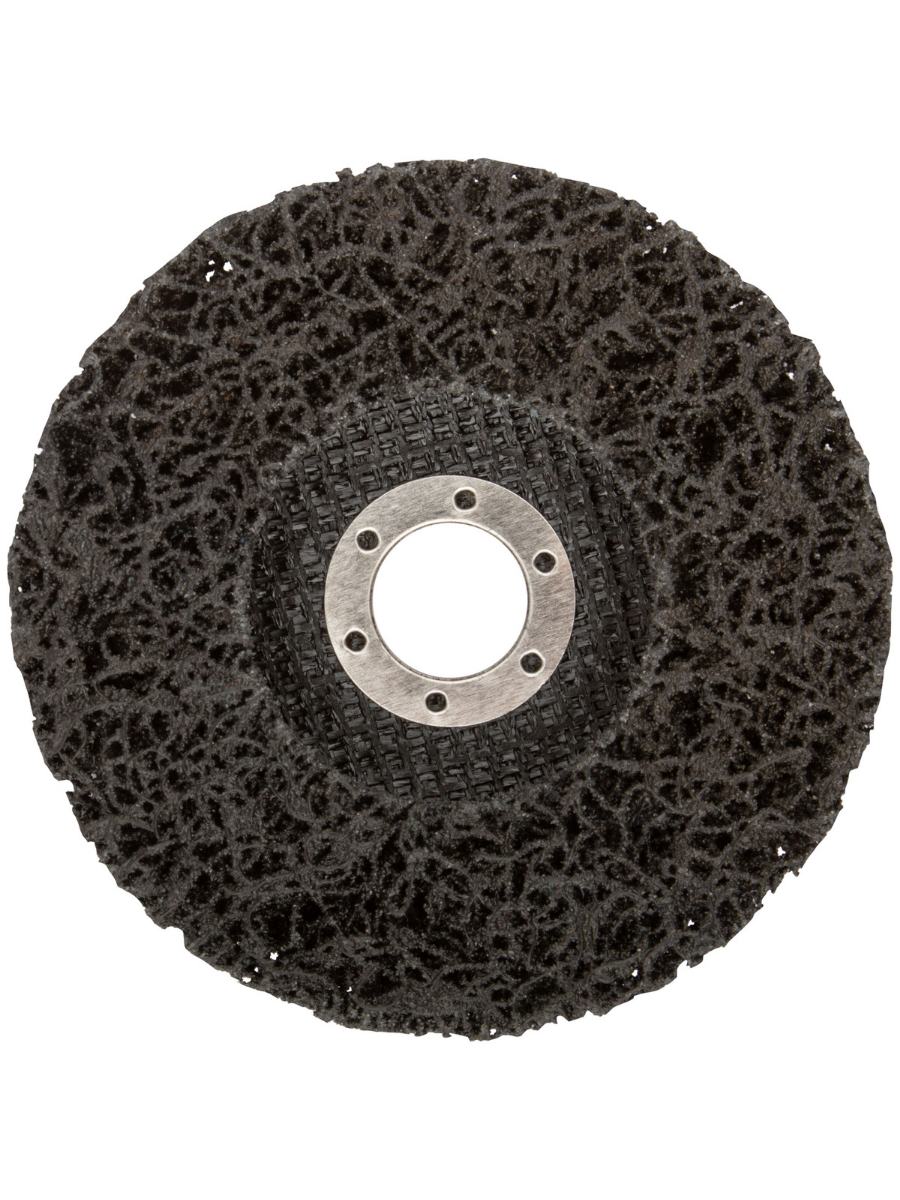 Грубой зернистости, отличается высокой износоустойчивостью. Для очистки металлических поверхностей. Для углошлифовальных машин. Посадочный диаметр 22,2 мм. Благодаря специальной структуре не загрязняется и меньше нагревается в процессе работы по сравнению с традиционными абразивными материалами. Материал: инструментальная сталь, нейлоновые волокна с образивным слоем из карбида кремния.