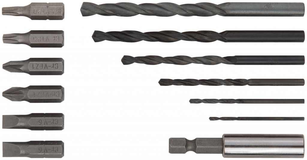 Дрель-шуруповерт аккумуляторная. 18 В; двухскоростной планетарный редуктор 0-350/0-1250 об/мин; быстрозажимной патрон 10 мм; максимальный крутящий момент 30 Нм; 2 батареи (Li-Ion) x 1,5 Ач; регулировка крутящего момента 15+1; быстрая зарядка батареи 1 ч.; регулировка частоты вращения; реверс; резиновые вставки; LED подсветка; 1,3 кг; кейс.