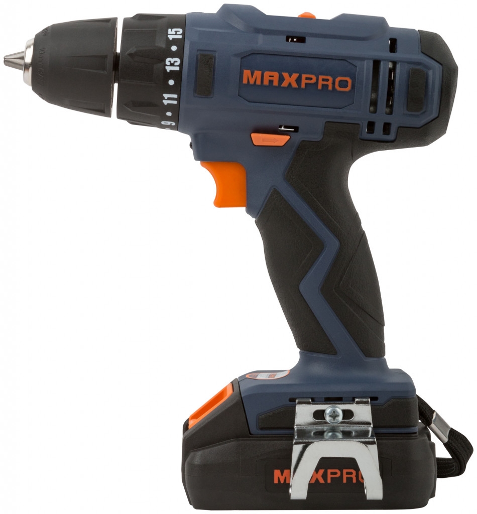Дрель-Шуруповерт акк.18,0 В; 0-350/1250 об/мин, регулир.об., резин.вст.MAX-PRO