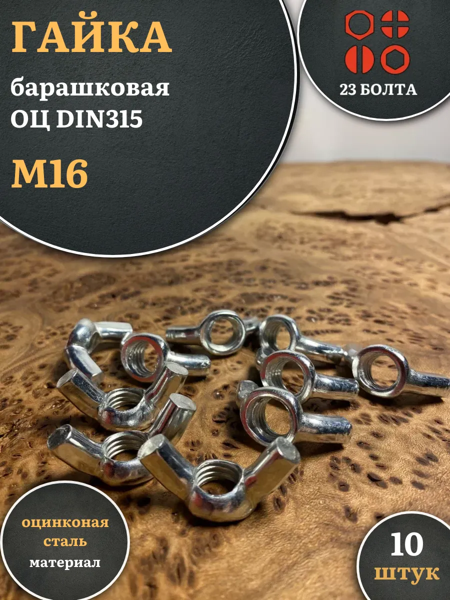 Гайка барашковая М16 ОЦ DIN315 , 10 шт.