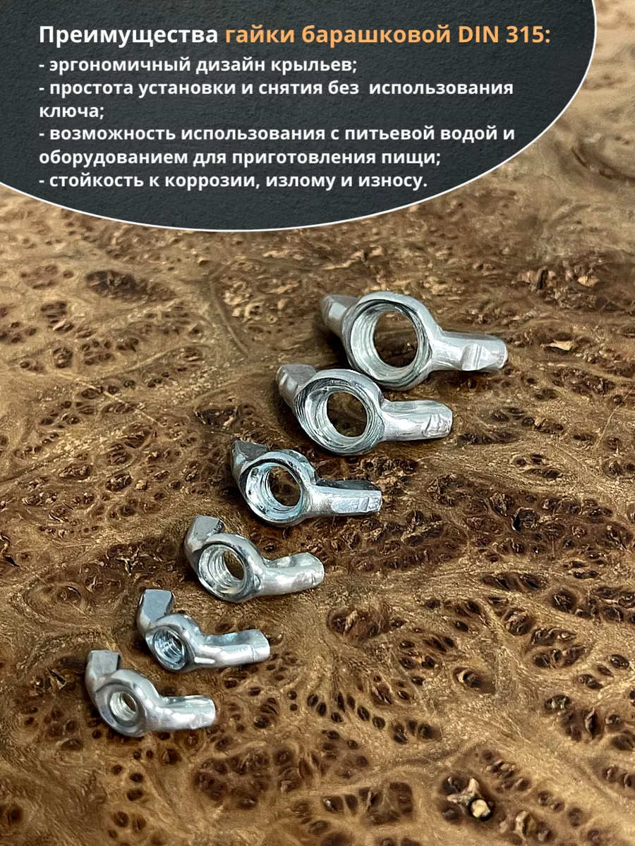 | Гайка барашковая М4,5,6,8,10,12 ОЦ DIN315 (по 10 шт.) | 11607 | 1 шт. |