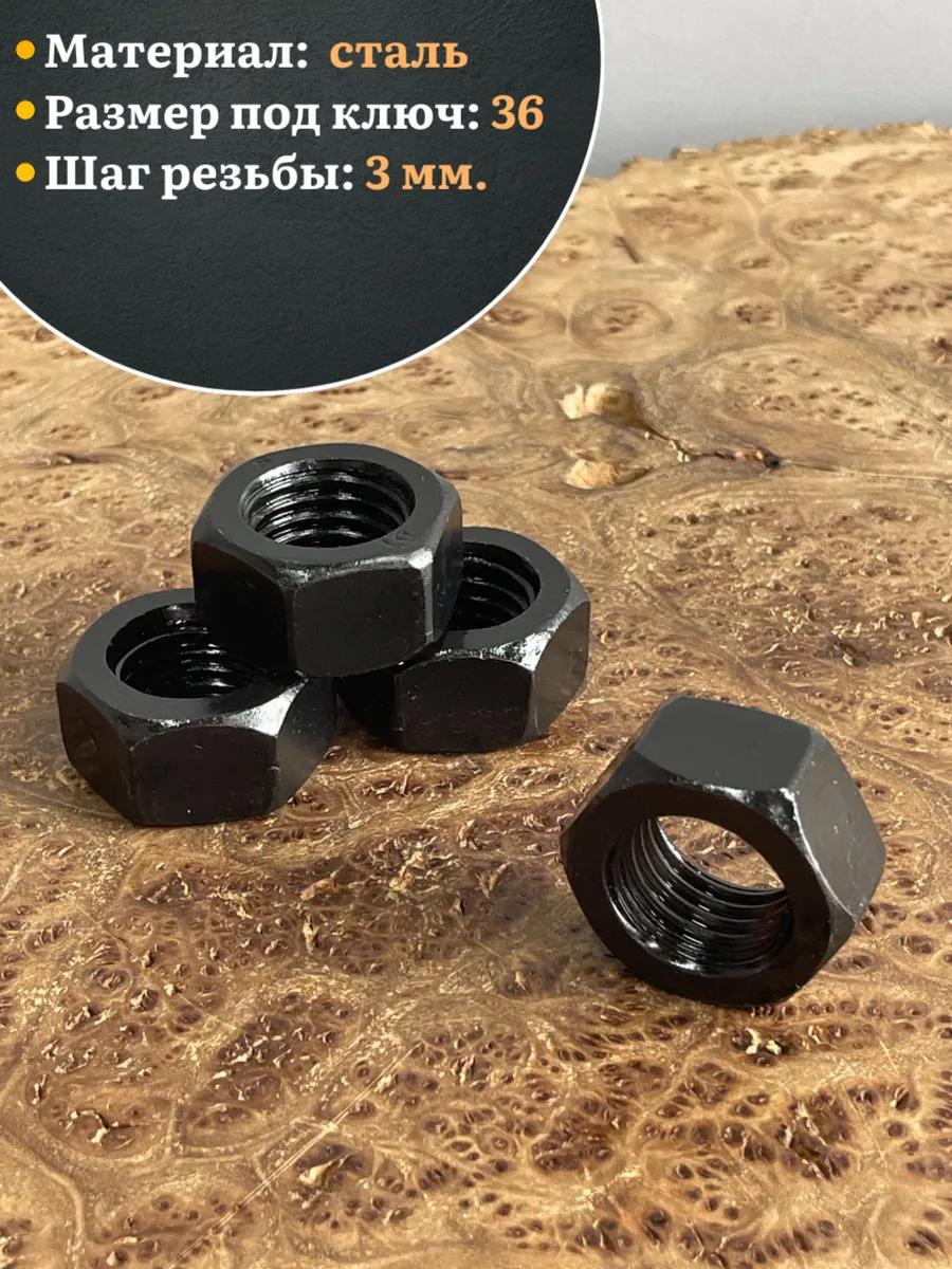 Гайка черная М24 высокопрочная к.п.10 DIN934, 4 шт.