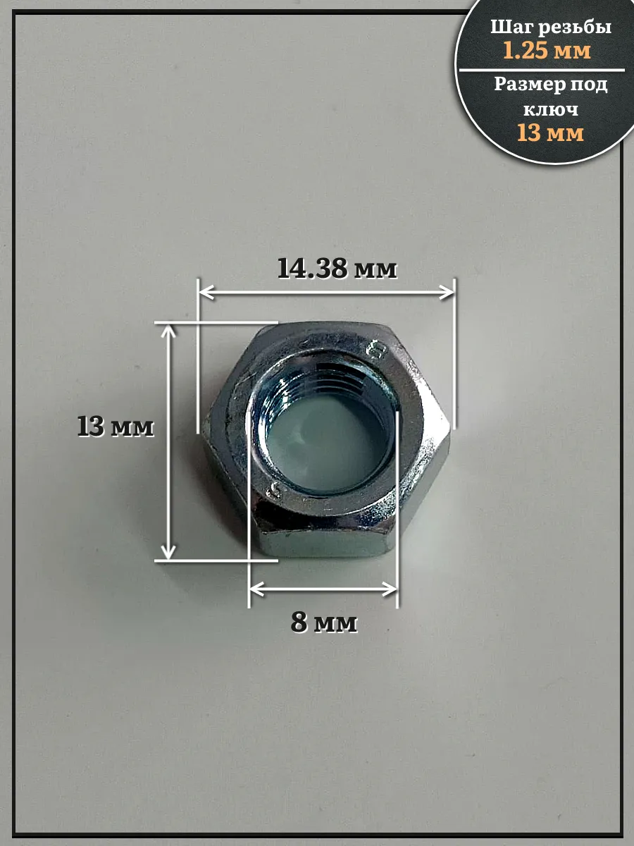 Оцинкованная гайка с левой резьбой М8 DIN 934 LH применяется в резьбовых соединениях, где есть риск самоотворота крепежа с правой резьбой. Изготовлена из стали класса прочности 8.
