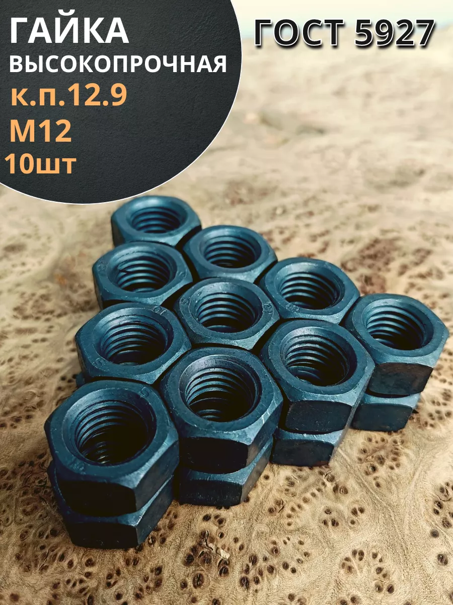 Гайка М12 высокопрочная черная к.п.12.9 DIN934,10 шт.