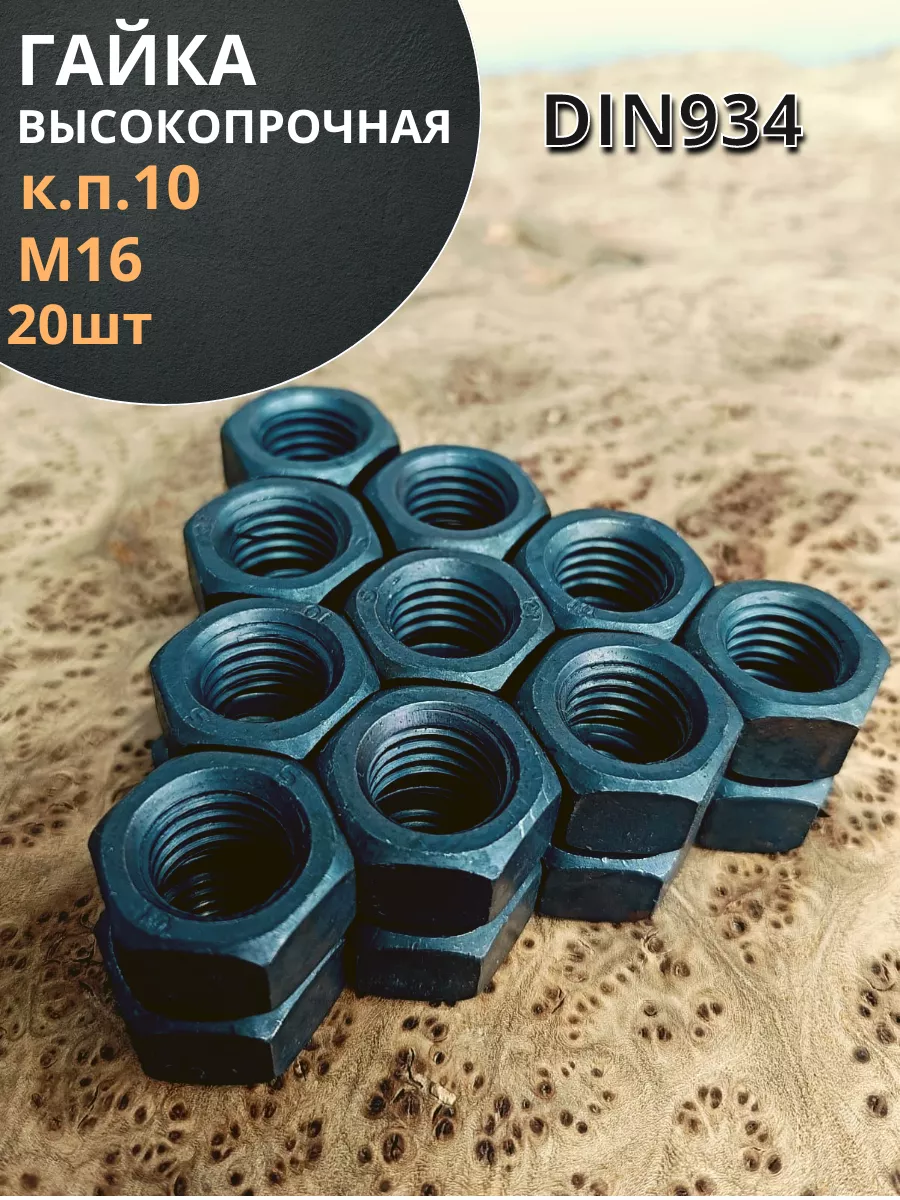 Гайка М16 высокопрочная черная к.п.10 DIN934, 20 шт.