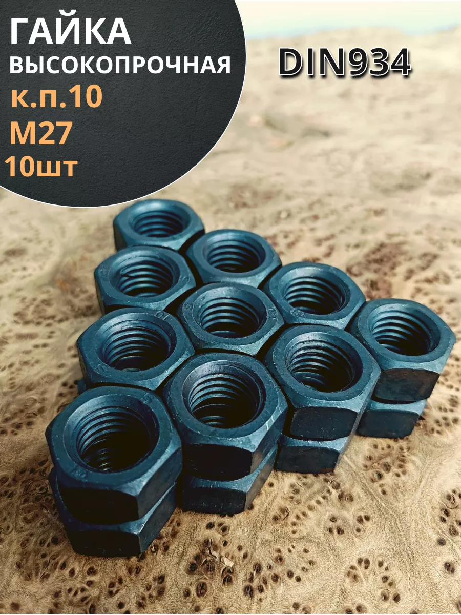 Гайка М27 высокопрочная черная к.п.10 DIN934, 10 шт.