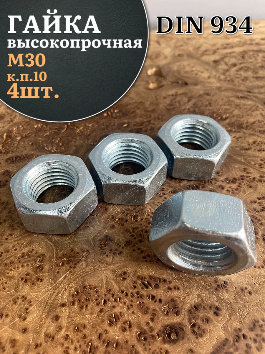 Гайка М30 высокопрочная оцинкованная к.п.10 DIN934, 4 шт.