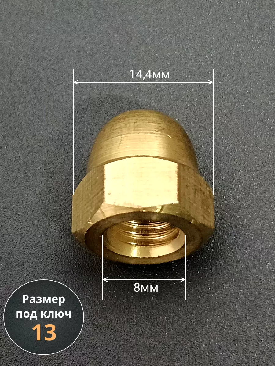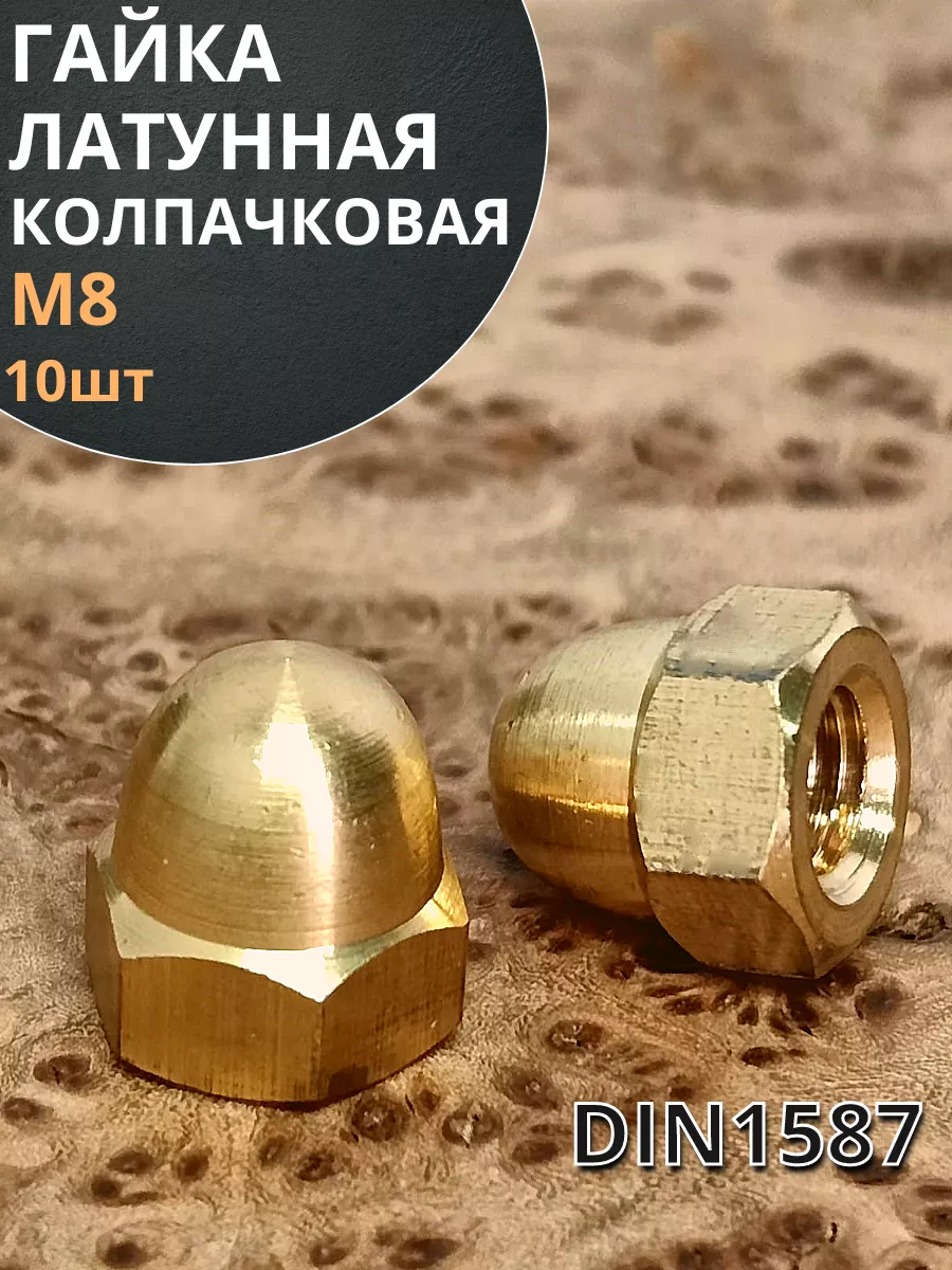 Гайка М8 латунная колпачковая DIN1587, 10 шт.