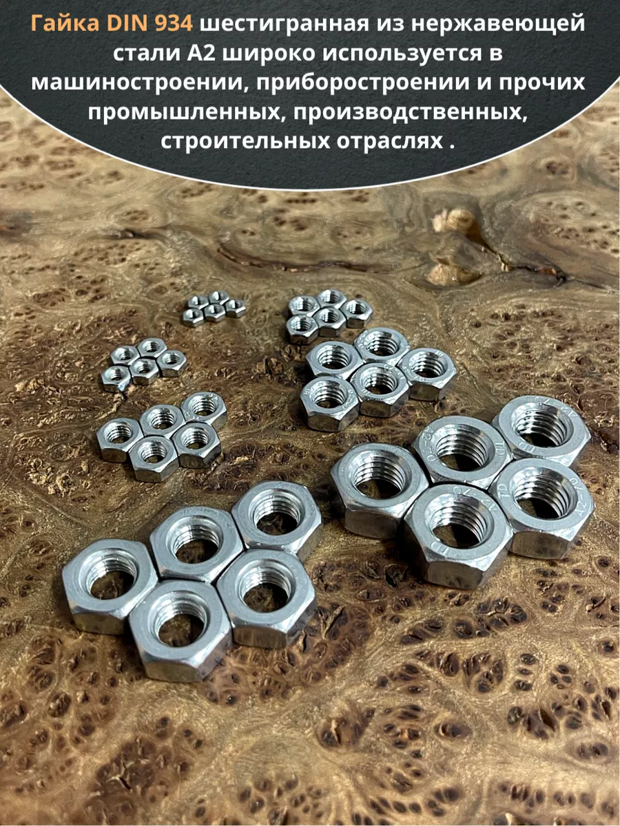 Гайка нержавеющая М3,4,5,6,8,10,12 DIN934 (по 10 шт)