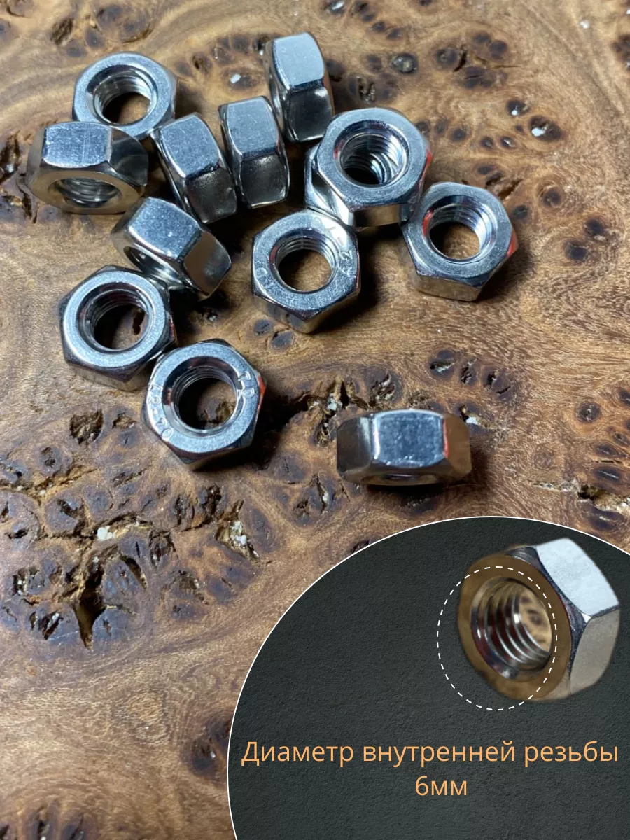 Гайка Нержавеющая М6 DIN 934 А2 шестигранная 10 шт АС3100600093D07 1 шт.