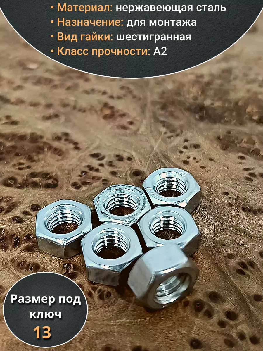 Гайка Нержавеющая М8 DIN 934 А2 шестигранная 100 шт