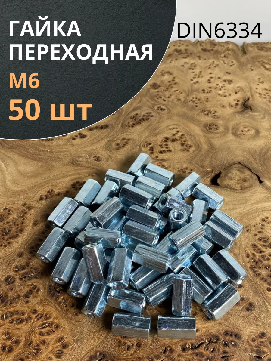Гайка переходная М6 ОЦ DIN6334, 50 шт.