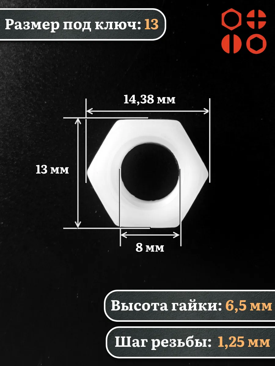 Гайка полиамидная М8 DIN934 (пластик), 10 шт. 2000000643007ф10 1 шт.